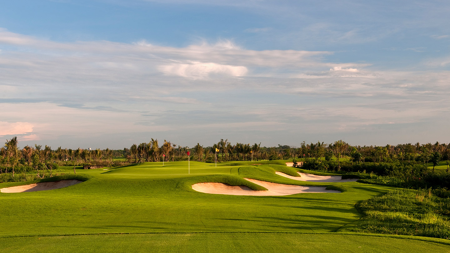 중국 하이난성 하이커우시에 위치한 아시아 최대 규모의 골프 리조트로, 총 10개의 18홀 챔피언십 코스를 보유한 세계적인 복합 단지다. 대표 코스 블랙스톤(Blackstone Course) 은 2011년 월드컵 오브 골프(World Cup of Golf), 2012~2017년 월드 레이디스 챔피언십(World Ladies Championship) 등 다수의 국제 대회를 개최하며 명성을 쌓았다. 용암암석 위에 설계된 블랙스톤 코스는 Golf Digest와 Asian Golf Monthly로부터 “중국 최고의 골프코스”로 선정되었으며, 아시아 신설 코스 중 최상위 평가를 받았다. 또한 Lava Fields, Sandbelt Trails, The Vintage, Shadow Dunes 등 코스마다 독창적인 콘셉트를 갖추어 다양한 스타일의 라운딩을 즐길 수 있다. 언론은 이곳을 “자연과 예술이 결합된 걸작 코스”로 평가하며, PGA와 LPGA 투어 선수들에게도 찬사를 받았다. 공항에서 약 15분 거리의 뛰어난 접근성과 세계적 수준의 리조트 시설 덕분에, 하이난을 대표하는 프리미엄 골프 여행지로 자리 잡고 있다.