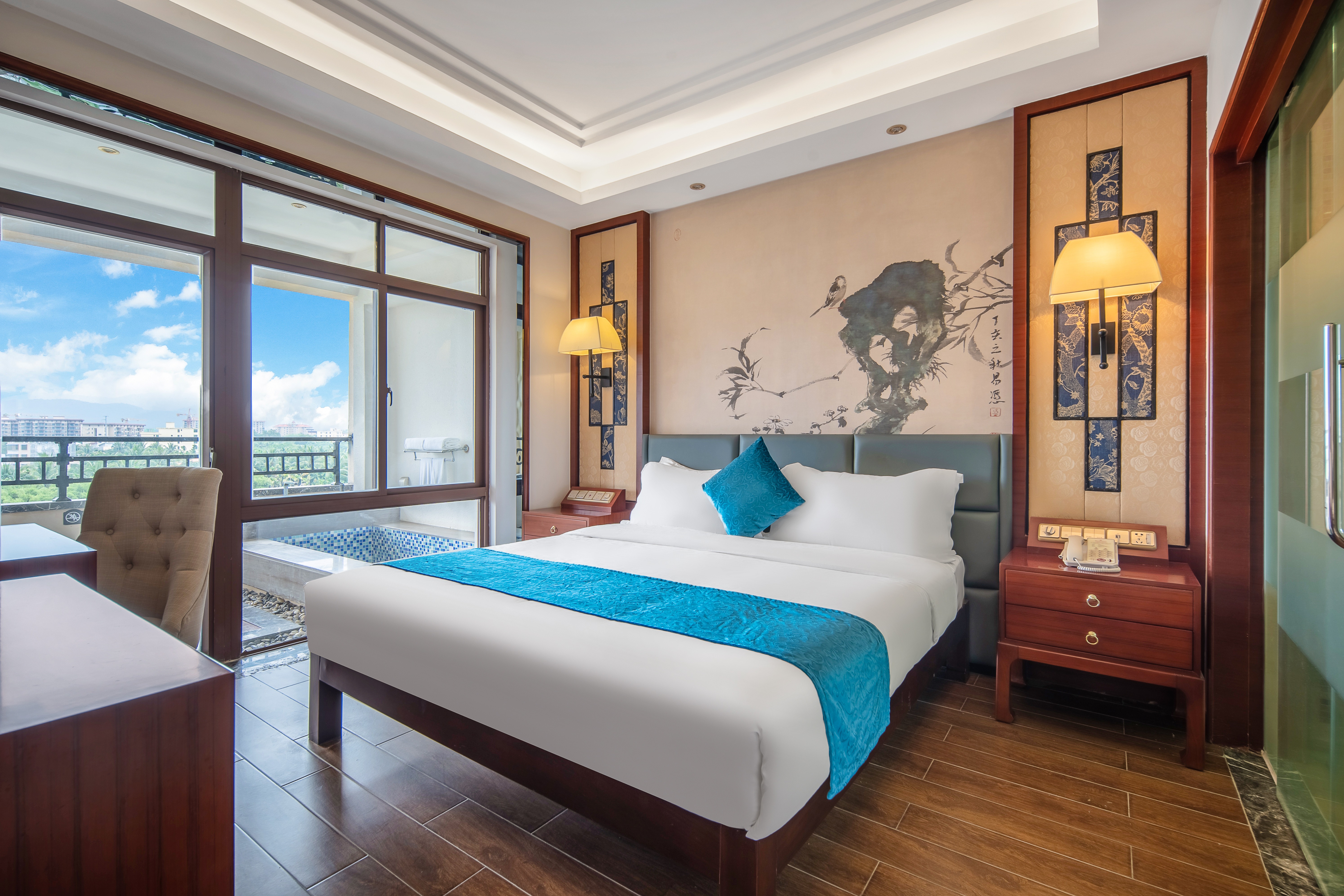 싱룽 온천지구 지역 특성상 연중 온난하며, 인근 강락원CC·싱룽CC 등 유명 골프장과 차량 10분 거리로 접근성이 좋습니다. 하이난 국제공항에서 호텔까지는 차량으로 90~120분 내외 소요됩니다.