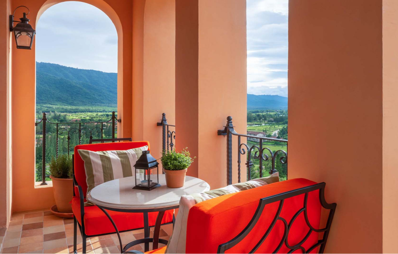 태국 카오야이 토스카나밸리 리조트 단지 내에 위치한 프리미엄 숙소로, 남유럽 **중세 성(城)**을 모티브로 한 외관과 클래식한 인테리어가 특징입니다. 객실은 스탠다드부터 디럭스, 스위트까지 다양하게 구성되어 있으며, 일부 객실은 발코니·테라스를 갖춰 골프장, 산악, 정원 등 탁 트인 자연 경관을 감상할 수 있습니다. 고급 가구와 넉넉한 공간의 모던 클래식 스타일로 꾸며져 쾌적한 휴식을 제공하며, 에어컨·무료 Wi-Fi·TV·미니바·전용 욕실 등 기본 편의시설을 완비했습니다. 리조트 내 레스토랑과 라운지, 수영장·스파 등 공용 시설 이용이 편리하고, Toscana Valley Country Club과 인접해 라운딩 동선이 짧아 골프+휴양 체류형 여행에 적합합니다. 전반적으로 감성적인 유럽풍 분위기와 자연 속 여유를 동시에 누릴 수 있어 커플·부부·가족은 물론 소규모 VIP 골프 여행객에게 특히 선호되는 숙소입니다.
